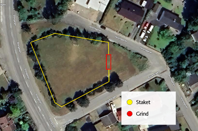 Hundrastgården är placerad på det område som ringas in av Björkstigen, Idrottsgatan och Storgatan i Bromölla.