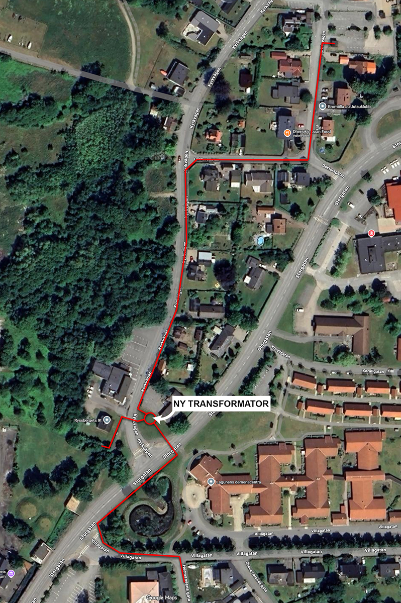 Syftet med arbetet är att förstärka både hög- och lågspänning i Bromölla. Arbetet innefattar även en ny transformatorstation i närheten av korsningen Kyrkvägen / Storgatan. Dessutom byts alla belysningskablar och stolpar ut i samarbete med Omexom.